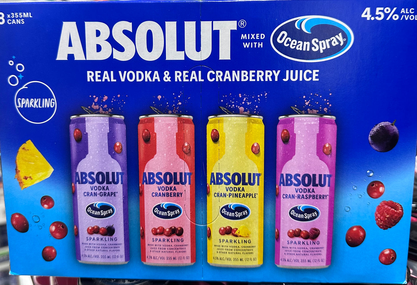 Absolut Ocean Spray Vodka Cranberry Variety 8 Pack 12oz